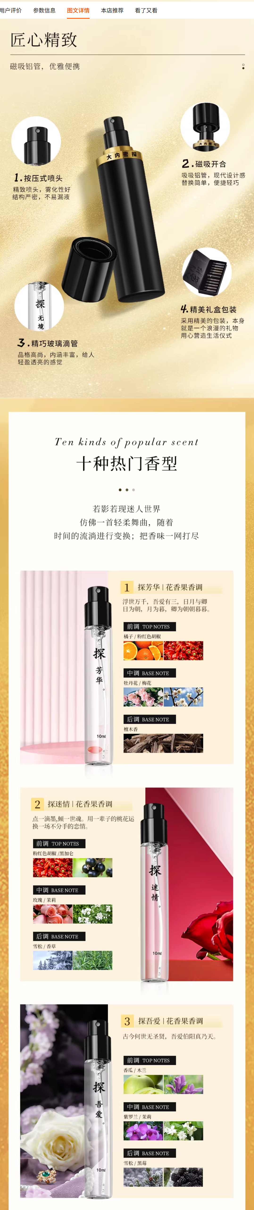 【粉色探梦】十个风格好闻香味10ml*10 100ml